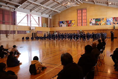 2月7日(火) 6年生は進学先である東水沢中学校で常盤小学校の6年生とともに先輩方と交流しました。中学校の先輩方の表現運動を見たり、中学校の代表生徒から校舎を案内してもらったりしました。子ども達は、先輩達が楽しく学習したり、優しく接してくれたりしたので、さらに進学への期待を高めた様子でした。